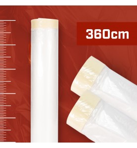 <p>FILM PLASTIQUE AVEC RUBAN 360cm x 22,5m x 25mm</p>